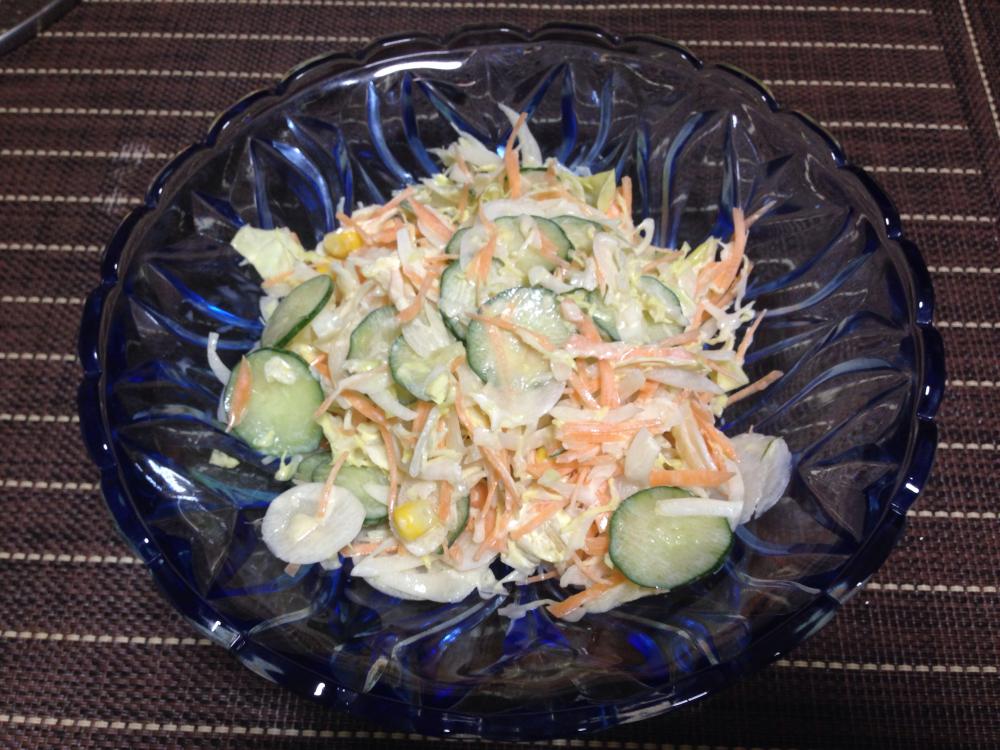 ![]() コーン、マヨネーズ、ポン酢を加えて混ぜ合わせます。