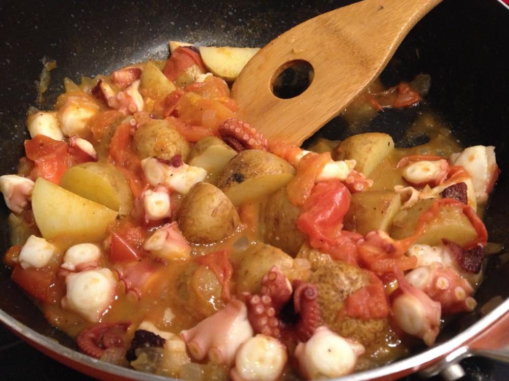 たこを加え、こしょうをふり混ぜる。