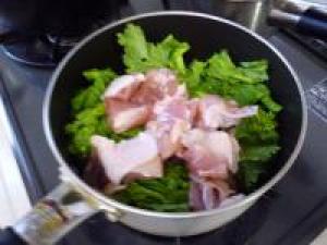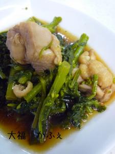 ![]() 菜の花、鶏肉に火がとおったら、みりんを入れて5分ほど煮たら完成です。