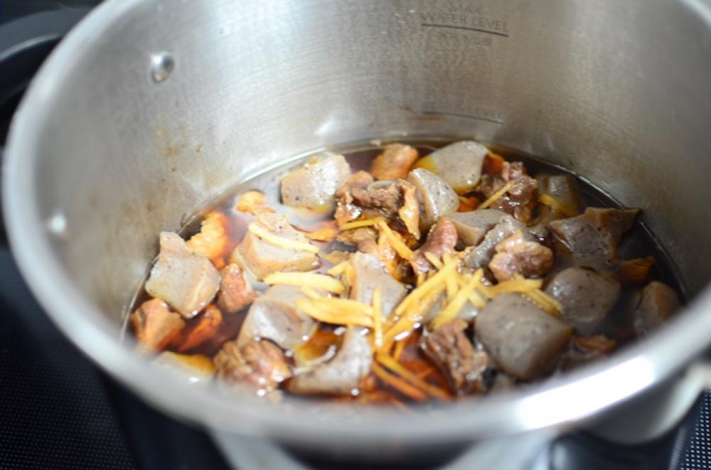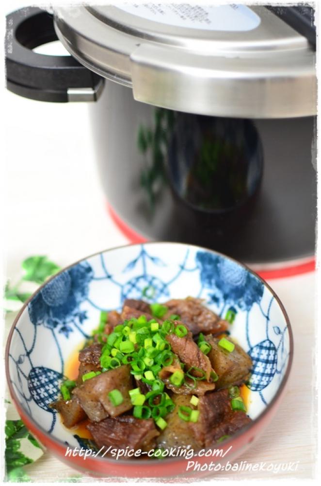 ![]() 圧力鍋にAと牛すじ、こんにゃく、生姜を入れ強火にかけ圧力がかかったら弱火にして5分加圧する。