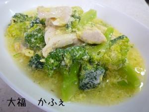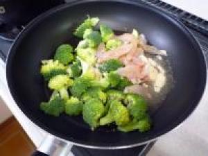 ![]() 鍋にブロッコリー、鶏ササミ、水300cc、鶏ガラの素、料理酒、塩を入れ煮ます。灰汁が出たら取り除いてください。