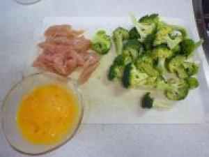 ![]() ササミは筋を切り落として、食べやすい大きさに切ります。卵は溶いておきます。