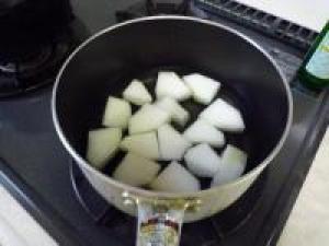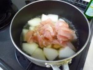 ![]() 鍋にとうがん、コンソメ、水300ccを入れて火にかけます。