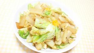 Aに火が通ってきたらBを加えてさらに炒め、Dで味をつけて出来上がり。