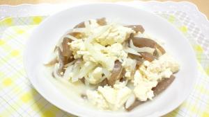 Aに火が通ってきたらBとDを加えてさらに炒め、材料が軟らかくなるまで炒めて出来上がり。