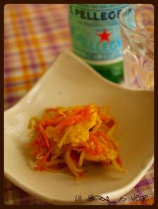 水を切ったモヤシとニンジンをサッと炒めバター、醤油を加えて全体に混ぜる。