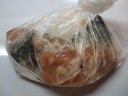 ![]() ナイロン袋に、適当な大きさに切った鯖とAを入れ、半日程度冷蔵庫で漬け込む。