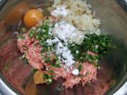 ![]() 豚ひき肉~こしょうまで全て混ぜ合わせこねる。冷蔵庫で15分以上置いて一旦冷やす。(*にら、たけのこはみじん切りで)