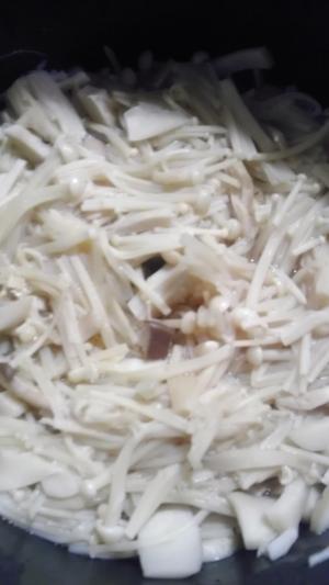 キノコをさばきつつ炒め、きのこがしんなりしてきたら料理酒と醤油をいれ、一混ぜし蓋をして5分煮ます。