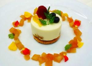Aのシュクレの上にDのジャムを塗る。チーズケーキをセルクルから抜いて上にのせる。 |