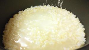 材料を炊飯器釜に入れ、[玄米]コースで炊飯する。