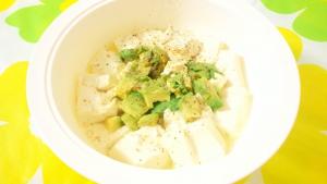 耐熱容器にAを入れ、蓋をしてレンジで豆腐に火が通るまで加熱する。