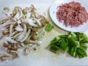 ![]() しめじは石突をとって、ほぐします。ピーマンはヘタと種を取り除き一口大の食べやすい大きさに切ります。