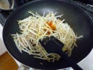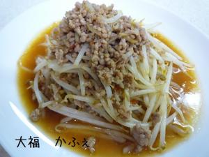 ![]() フライパンに油をひいて火にかけ、豚挽肉、もやしを炒めていきます。