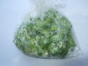 ![]() ポリ袋にゴーヤと塩麹を空気を抜いて入れてもみこみ、一晩をおく。