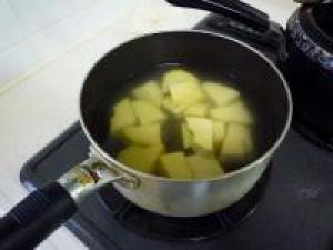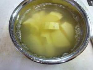 ![]() サツマイモは皮をむいて、一口大に切り10分ほど水につけて灰汁を抜きます。