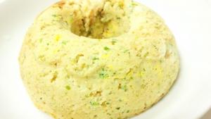 耐熱容器(レンジ用ケーキ型)に材料を入れよく混ぜ合わせ、レンジで火が通るまで加熱する。