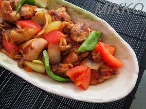 鶏肉を一口大に切り、酒と塩こしょうで下味をつける。小麦粉を薄くはたく。