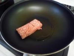 ![]() フライパンに油をひいて、豚ひきいれて炒めていきます。