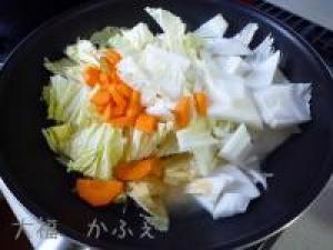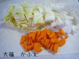 ![]() 白菜は一口大のざく切りに、人参は皮をむいて半月切りにします。