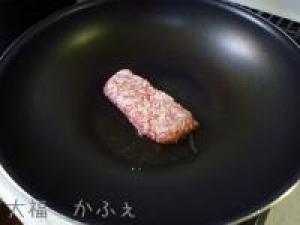 ![]() フライパンに油をひいて豚挽き肉を炒めます。
