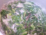 (煮出せたら昆布を取り出し、細切りにする。) |