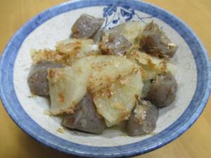 こんにゃくはたたいて柔らかくし、両面に格子状の切り込みを入れたら、スプーンで一口大にちぎって軽く湯どうしする。
