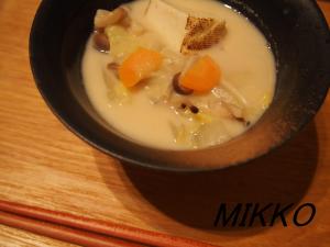 鍋に④と豆腐、お好みで甘酒を加え、ひと煮する。