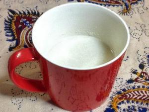 消毒した容器に、おかゆを入れ、容器の5、6分目位まで湯を入れ、混ぜる。60℃以下となるように湯の温度は調節する。