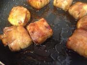 ![]() 中火に熱したフライパンに菜種油をしき、肉巻き豆腐を焼いていきます。 6面すべて焼きましょう。