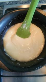弱火にしヘラで絶えず混ぜる。 |