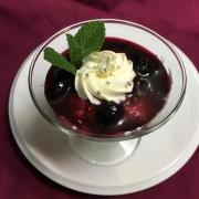 ![]() 器に適量盛り付け、ブルーベリーソースを適量添えて出来上がり。