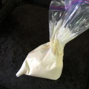 絞り出し袋がない時は、ジップロックの角を切って口金を挿入。密閉できて便利です。 |