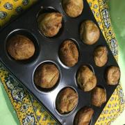 ![]() マフィン型にとかしバター(分量外)をたらし、1の卵液を注ぎ分け、200度に予熱したオーブンで15分程度焼く。