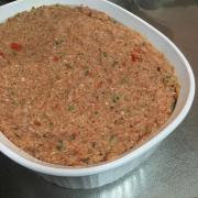 ソーセージをみじん切りにし、ひき肉、たまご、Cのハーブ、香辛料等を2に加え、粘りが出るまでよく混ぜる。