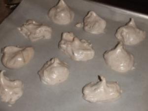 ![]() 天板にクッキングペーパーを敷き(2.)をスプーンですくって、低温のオーブンで30分焼く。オーブンに入れたまま荒熱を取る。