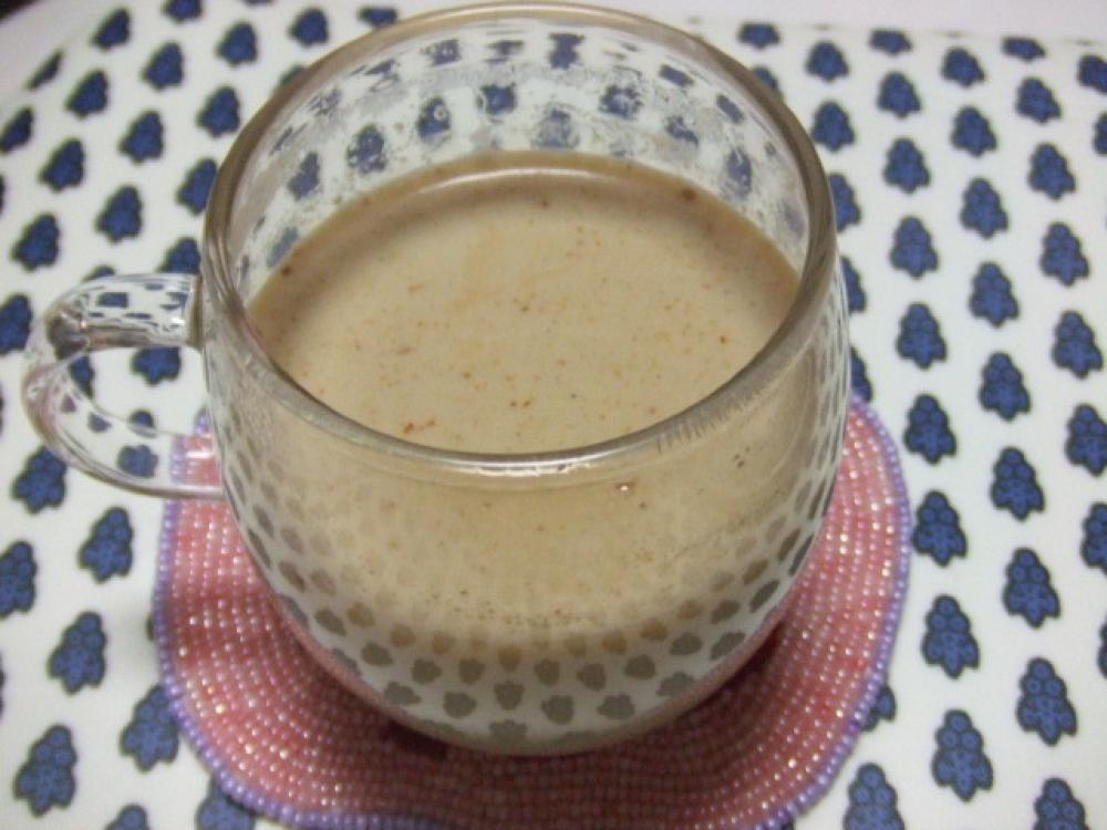 火を止めて、カルダモン・コリアンダー・シナモンシュガーを入れ、よく混ぜてから茶葉を漉す。