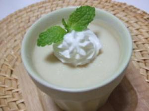 器に入れ、冷蔵庫でよく冷やし、食べる直前にホイップクリームを乗せ、上からレモンパウダーを振り、ミントの葉を添える。