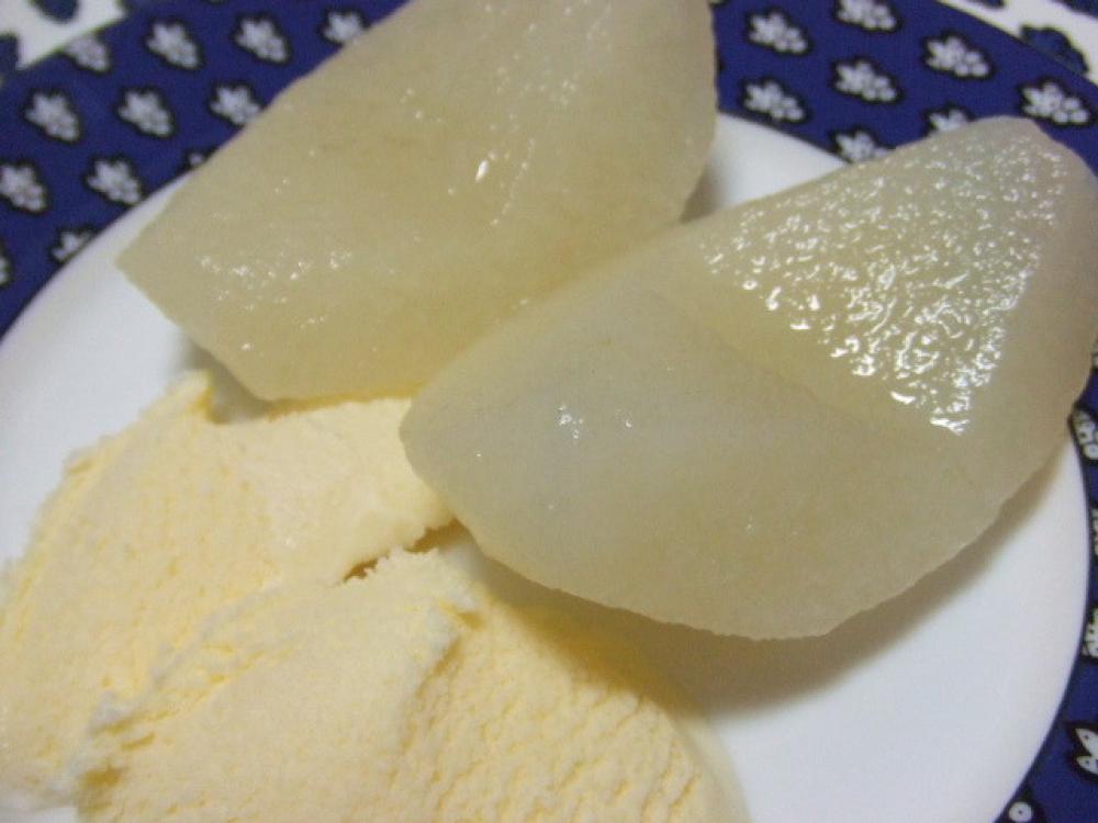 鍋に★印の材料を入れよく混ぜ、梨を並べて入れて火にかけ、煮立ったら弱火にして20分ほど煮る。