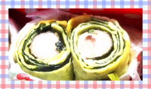 マヨネーズは絞るだけでもOK。最後に芯になる食材をのせクルクルと巻きます。 |