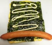 卵焼きの上に海苔を敷き、マヨネーズを伸ばします。 |