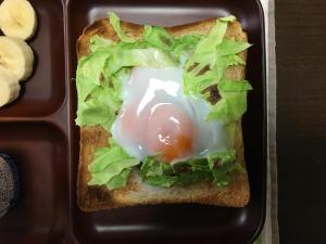 卵をトーストの上にのせる。