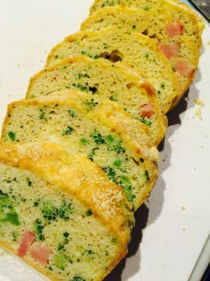 ベーコン、チーズをさいの目に切り小房に切ったブロッコリーとボウルに入れておく。