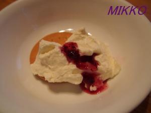 水が切れたヨーグルト、ビスケットを盛り付け、ブルーベリーソースをかける。