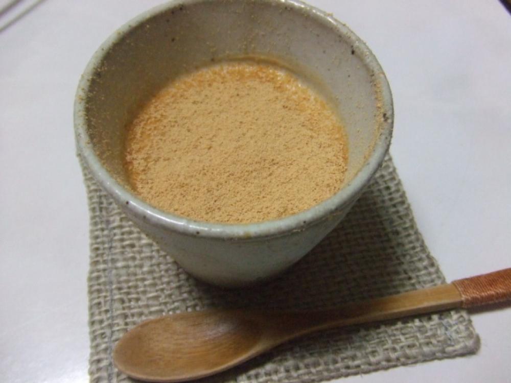 冷ました(1.)を器の底に敷きつめ、上から(2.)を入れ、冷蔵庫で冷やす。食べるときにきな粉(分量外)を上から振る。