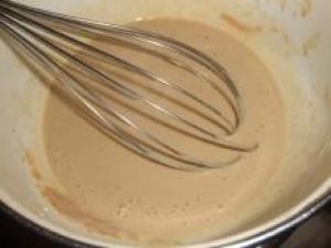 ![]() 豆乳と黒蜜・きな粉を混ぜ、マスカルポーネにすこしずつ加えながらよく混ぜる。