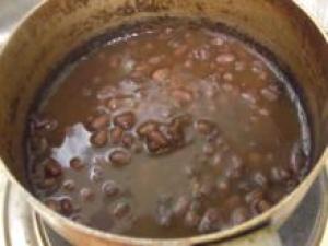 ![]() 小豆の4倍の水を入れ、柔らかくなるまで、弱火でコトコト煮る。時々さし水をする。もちあわともちきびを30分水に漬けておく。