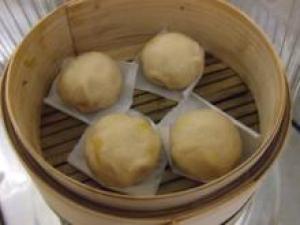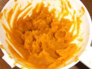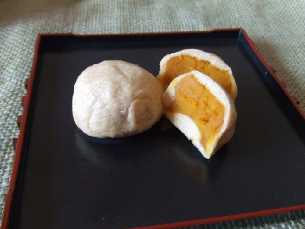 ![]() かぼちゃを蒸し器で蒸し、砂糖大さじ2とゆずを入れ、よく煉る。6等分に丸める。