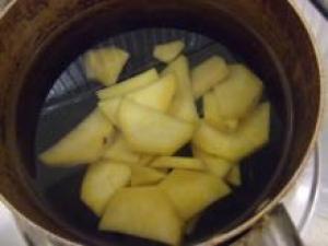 さつま芋は皮をむいて柔らかくなるまで茹でる。