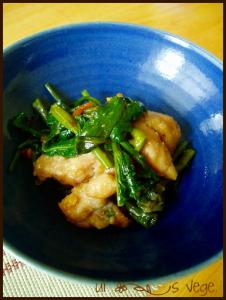 鶏肉にある程度火が通ったら空芯菜を入れて強火でサッと炒める。